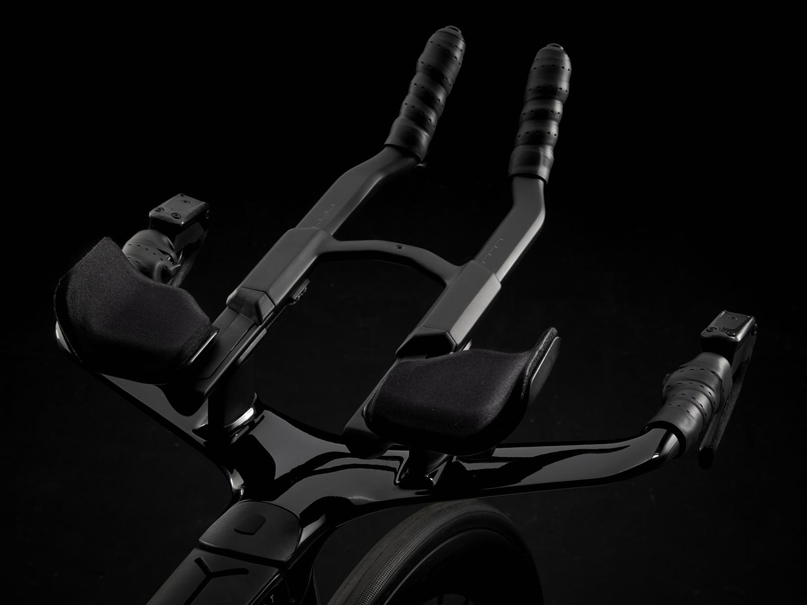 Einen ultraleichten Rahmen aus 800 Series OCLV Carbon, windschnittige Rohre mit Kammtail Virtual Foil-Profil (KVF), eine Speed Concept-Carbongabel mit aerodynamischem Profil, vibrationsdämpfendes IsoSpeed, integrierte aerodynamische Aufbewahrungslösungen für Verpflegung, Flüssigkeit und Pannenkit, einen drahtlosen, elektronischen SRAM Rival AXS 12fach-Antrieb mit SRAM AXS-Blips-Schalthebeln für eine aerodynamische Sitzposition beim Schalten, einen Rival AXS-Powermeter, einen vollständig integrierten Lenker samt Vorbau, einen triathlonspezifischen Bontrager Hilo Comp-Sattel für eine aggressive Aero-Sitzposition, zuverlässig zupac
