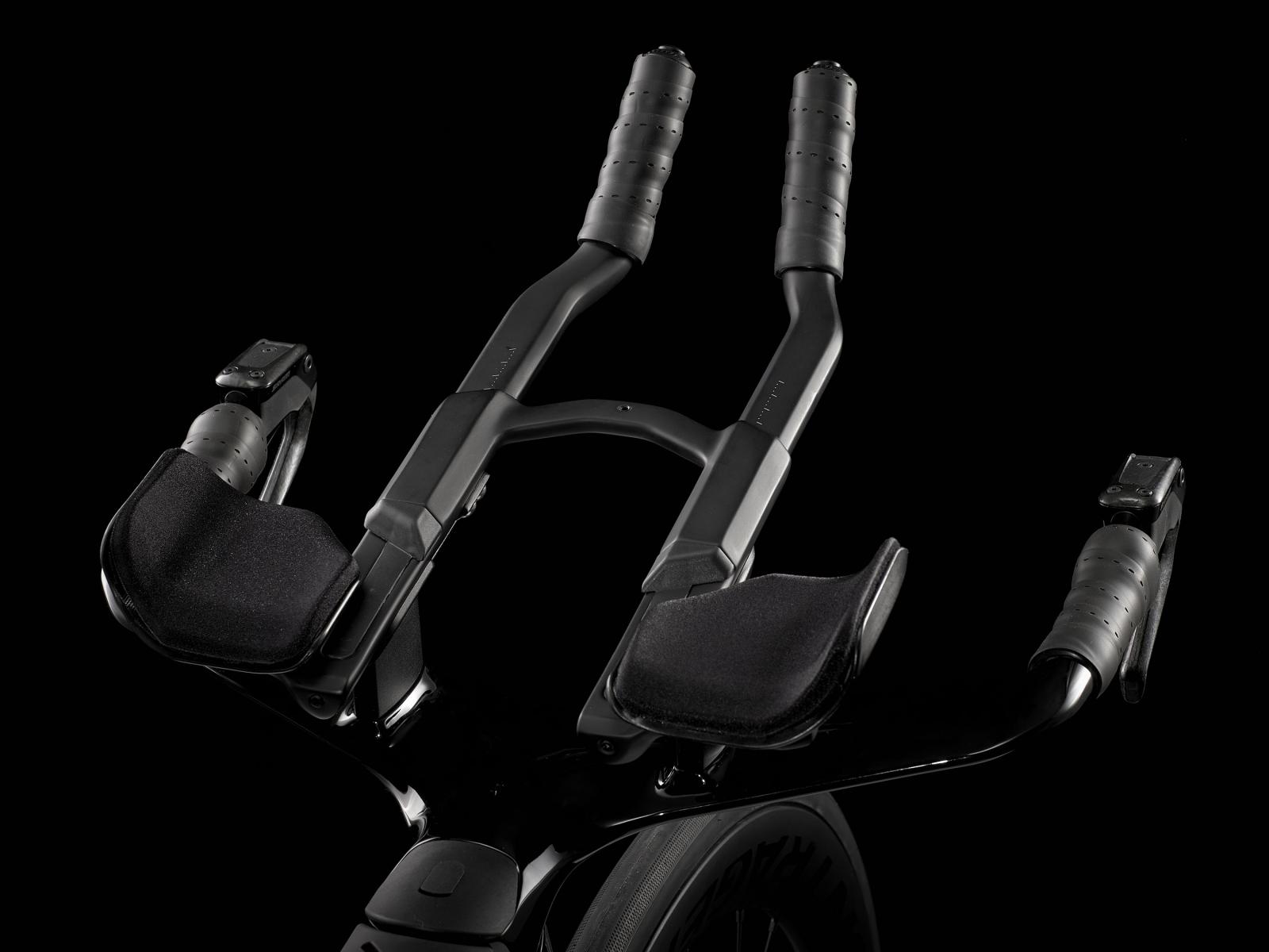 Einen ultraleichten Rahmen aus 800 Series OCLV Carbon, windschnittige Rohre mit Kammtail Virtual Foil-Profil (KVF), eine Speed Concept-Carbongabel mit aerodynamischem Profil, vibrationsdämpfendes IsoSpeed, integrierte aerodynamische Aufbewahrungslösungen für Verpflegung, Flüssigkeit und Pannenkit, einen drahtlosen, elektronischen SRAM Rival AXS 12fach-Antrieb mit SRAM AXS-Blips-Schalthebeln für eine aerodynamische Sitzposition beim Schalten, einen Rival AXS-Powermeter, einen vollständig integrierten Lenker samt Vorbau, einen triathlonspezifischen Bontrager Hilo Comp-Sattel für eine aggressive Aero-Sitzposition, zuverlässig zupac
