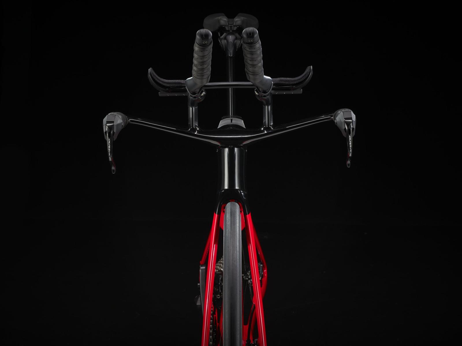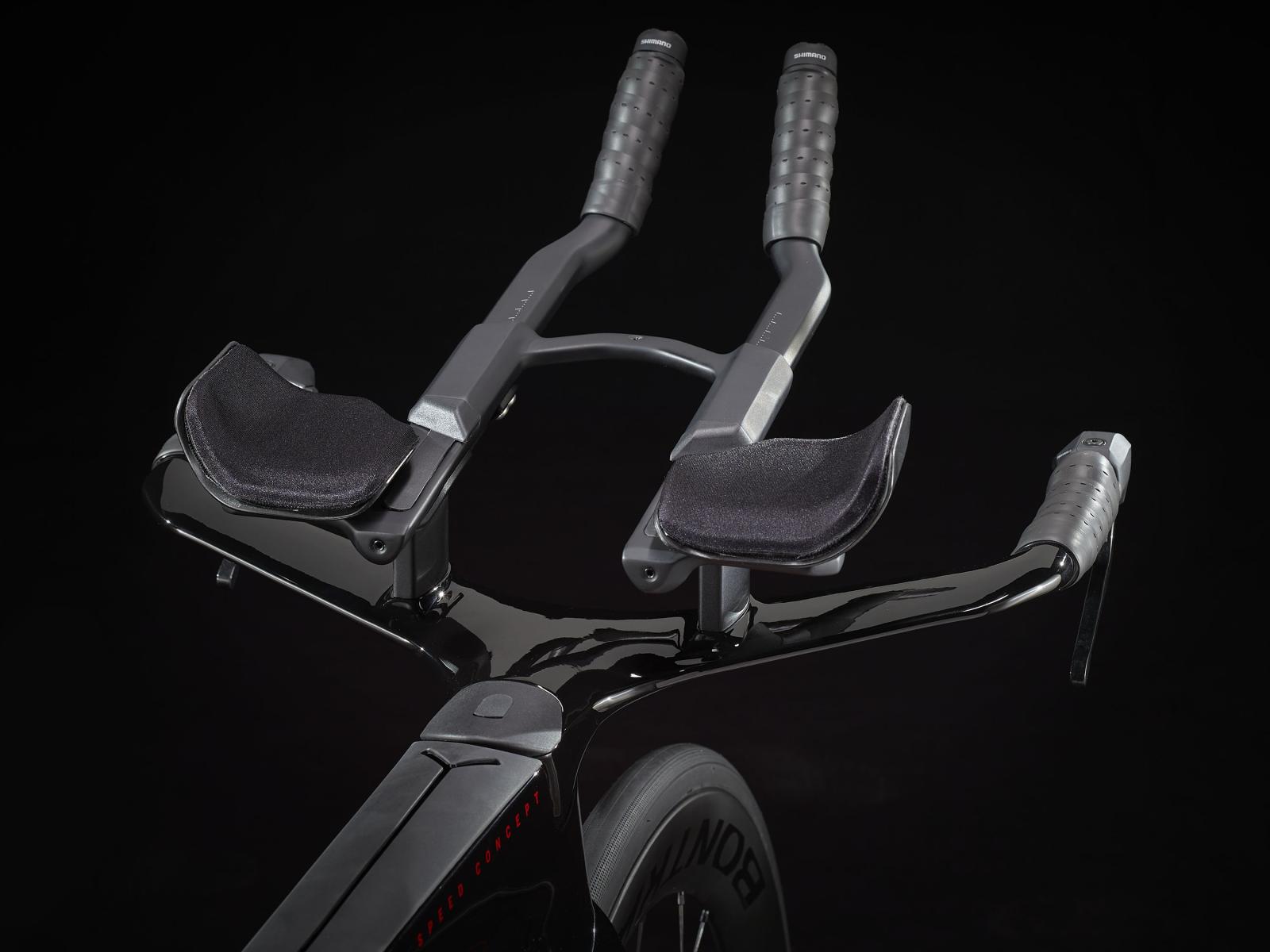 Einen ultraleichten Rahmen aus 800 Series OCLV Carbon, windschnittige Rohre mit Kammtail Virtual Foil Profil (KVF), eine Speed Concept Carbongabel mit aerodynamischem Profil, vibrationsdämpfendes IsoSpeed und integrierte Aufbewahrungslösungen für Verpflegung, Flüssigkeit und Pannenkit. Dazu gibt es einen drahtlosen, elektronischen Shimano Ultegra Di2 12fach-Antrieb, eine vollständig integrierte Lenker/Vorbau-Einheit, einen triathlonspezifischen Bontrager Hilo Comp Sattel für eine aggressive Aero-Sitzposition, Scheibenbremsen für zuverlässige Bremsleistung und Bontrager Aeolus Pro 51 Laufräder aus OCLV Carbon.