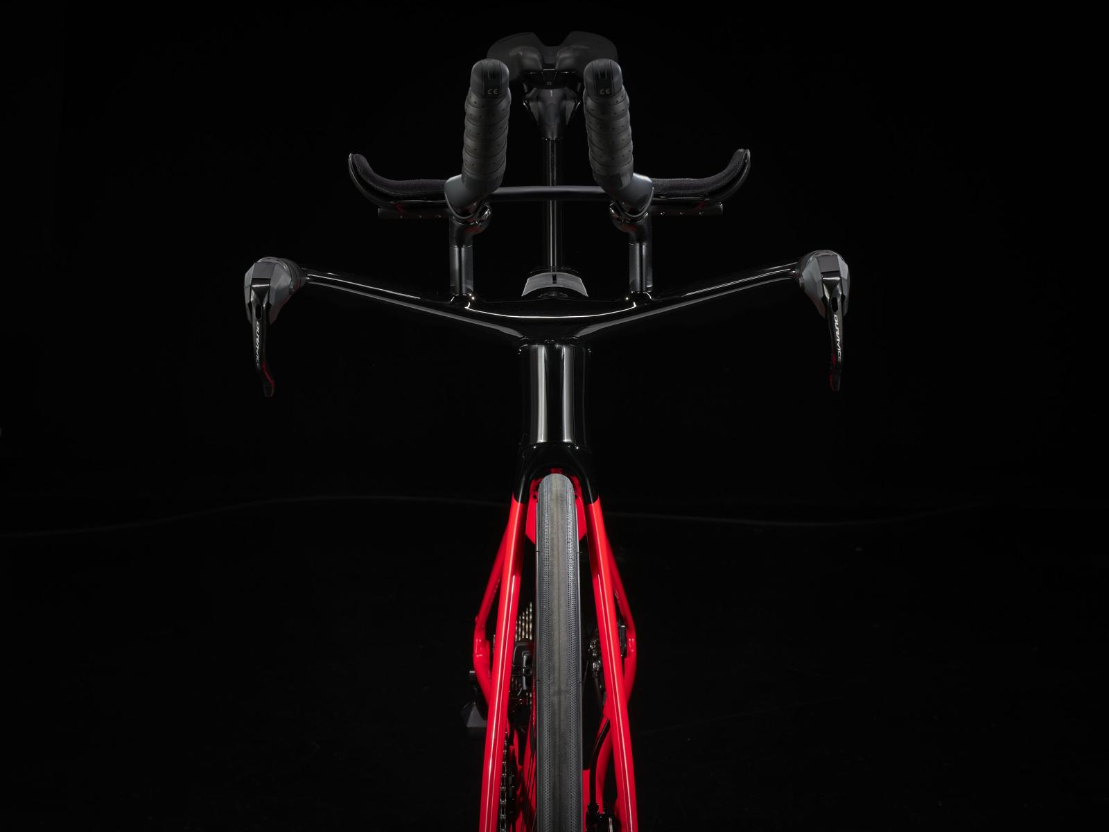 Einen ultraleichten Rahmen aus 800 Series OCLV Carbon, windschnittige Rohre mit Kammtail Virtual Foil Profil (KVF), eine Speed Concept Carbongabel mit aerodynamischem Profil, vibrationsdämpfendes IsoSpeed und integrierte Aufbewahrungslösungen für Verpflegung, Flüssigkeit und Pannenkit. Dazu gibt es einen drahtlosen, elektronischen Shimano Ultegra Di2 12fach-Antrieb, eine vollständig integrierte Lenker/Vorbau-Einheit, einen triathlonspezifischen Bontrager Hilo Comp Sattel für eine aggressive Aero-Sitzposition, Scheibenbremsen für zuverlässige Bremsleistung und Bontrager Aeolus Pro 51 Laufräder aus OCLV Carbon.