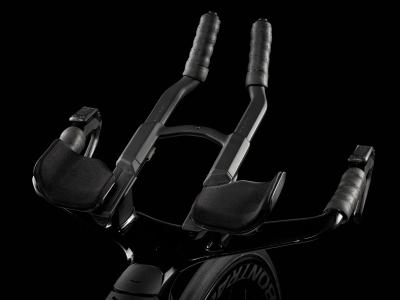 Einen ultraleichten Rahmen aus 800 Series OCLV Carbon, windschnittige Rohre mit Kammtail Virtual Foil-Profil (KVF), eine Speed Concept-Carbongabel mit aerodynamischem Profil, straßenglättendes IsoSpeed, integrierte Aufbewahrungslösungen für Verpflegung, Flüssigkeit und ein Pannenkit, einen drahtlosen elektronischen SRAM RED AXS 12fach-Antrieb mit SRAM AXS Blips-Schalthebeln, einen SRAM RED AXS-Powermeter, einen vollständig integrierten Lenker samt Vorbau, einen triathlonspezifischen Bontrager Hilo Pro-Carbonsattel für eine aggressive Aero-Sitzposition, zuverlässig zupackende Scheibenbremsen und aerodynamische Bontrager Aeolus RS