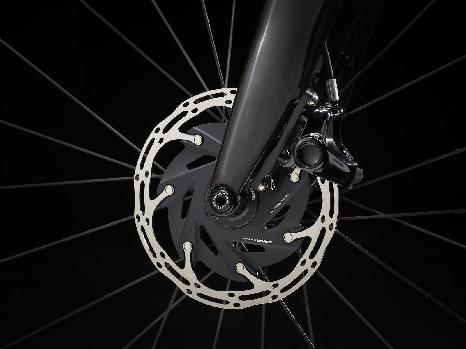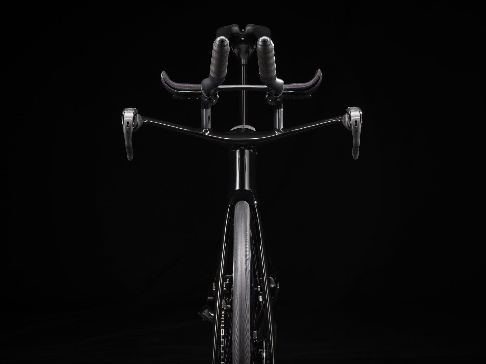 Einen ultraleichten Rahmen aus 800 Series OCLV Carbon, windschnittige Rohre mit Kammtail Virtual Foil-Profil (KVF), eine Speed Concept-Carbongabel mit aerodynamischem Profil, straßenglättendes IsoSpeed, integrierte Aufbewahrungslösungen für Verpflegung, Flüssigkeit und ein Pannenkit, einen drahtlosen elektronischen SRAM RED AXS 12fach-Antrieb mit SRAM AXS Blips-Schalthebeln, einen SRAM RED AXS-Powermeter, einen vollständig integrierten Lenker samt Vorbau, einen triathlonspezifischen Bontrager Hilo Pro-Carbonsattel für eine aggressive Aero-Sitzposition, zuverlässig zupackende Scheibenbremsen und aerodynamische Bontrager Aeolus RS