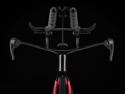 Einen ultraleichten Rahmen aus 800 Series OCLV Carbon, windschnittige Rohre mit Kammtail Virtual Foil-Profil (KVF), eine Speed Concept-Carbongabel mit aerodynamischem Profil, straßenglättendes IsoSpeed, integrierte Aufbewahrungslösungen für Verpflegung, Flüssigkeit und ein Pannenkit, einen drahtlosen elektronischen SRAM RED AXS 12fach-Antrieb mit SRAM AXS Blips-Schalthebeln, einen SRAM RED AXS-Powermeter, einen vollständig integrierten Lenker samt Vorbau, einen triathlonspezifischen Bontrager Hilo Pro-Carbonsattel für eine aggressive Aero-Sitzposition, zuverlässig zupackende Scheibenbremsen und aerodynamische Bontrager Aeolus RS