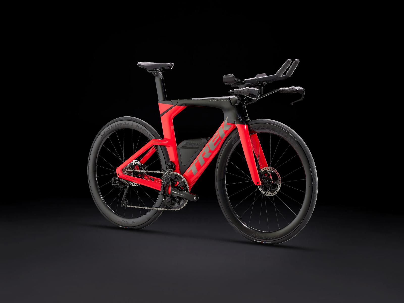 Einen ultraleichten Rahmen aus 800 Series OCLV Carbon, windschnittige Rohre mit Kammtail Virtual Foil-Profil (KVF), eine Speed Concept-Carbongabel mit aerodynamischem Profil, straßenglättendes IsoSpeed, integrierte Aufbewahrungslösungen für Verpflegung, Flüssigkeit und ein Pannenkit, einen drahtlosen elektronischen Shimano Dura-Ace 12fach-Antrieb, einen vollständig integrierten Lenker samt Vorbau, einen triathlonspezifischen Bontrager Hilo Pro-Carbonsattel für eine aggressive Aero-Sitzposition, Scheibenbremsen für zuverlässige Bremsleistung und aerodynamische Bontrager Aeolus RSL 51-Laufräder aus OCLV Carbon.