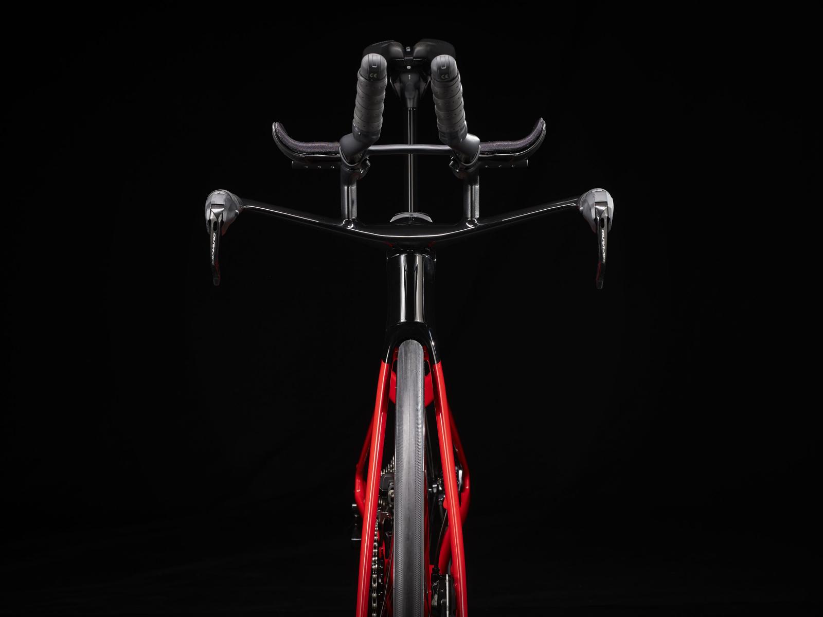 Einen ultraleichten Rahmen aus 800 Series OCLV Carbon, windschnittige Rohre mit Kammtail Virtual Foil-Profil (KVF), eine Speed Concept-Carbongabel mit aerodynamischem Profil, straßenglättendes IsoSpeed, integrierte Aufbewahrungslösungen für Verpflegung, Flüssigkeit und ein Pannenkit, einen drahtlosen elektronischen Shimano Dura-Ace 12fach-Antrieb, einen vollständig integrierten Lenker samt Vorbau, einen triathlonspezifischen Bontrager Hilo Pro-Carbonsattel für eine aggressive Aero-Sitzposition, Scheibenbremsen für zuverlässige Bremsleistung und aerodynamische Bontrager Aeolus RSL 51-Laufräder aus OCLV Carbon.