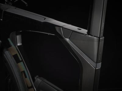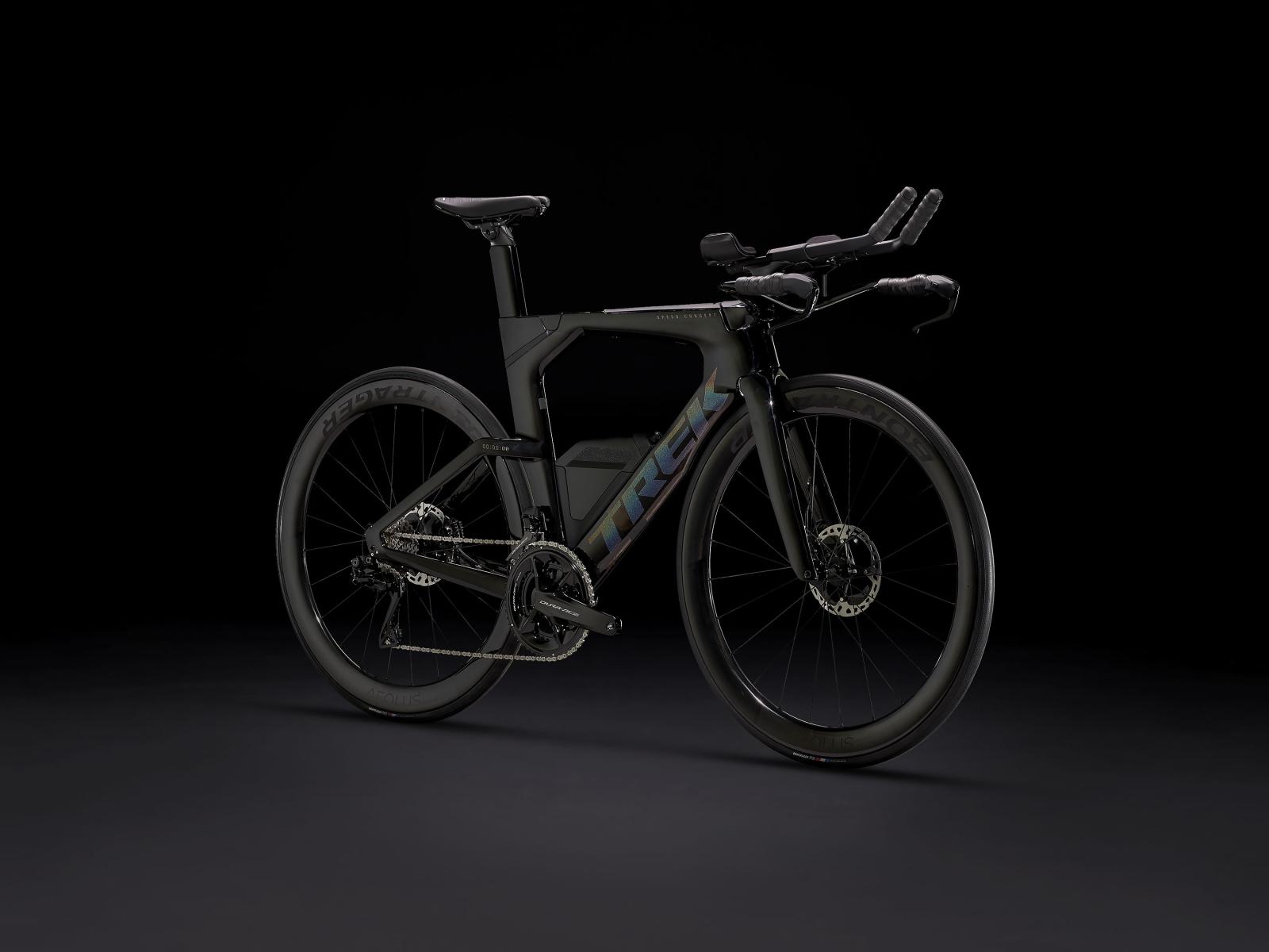 Einen ultraleichten Rahmen aus 800 Series OCLV Carbon, windschnittige Rohre mit Kammtail Virtual Foil-Profil (KVF), eine Speed Concept-Carbongabel mit aerodynamischem Profil, straßenglättendes IsoSpeed, integrierte Aufbewahrungslösungen für Verpflegung, Flüssigkeit und ein Pannenkit, einen drahtlosen elektronischen Shimano Dura-Ace 12fach-Antrieb, einen vollständig integrierten Lenker samt Vorbau, einen triathlonspezifischen Bontrager Hilo Pro-Carbonsattel für eine aggressive Aero-Sitzposition, Scheibenbremsen für zuverlässige Bremsleistung und aerodynamische Bontrager Aeolus RSL 51-Laufräder aus OCLV Carbon.