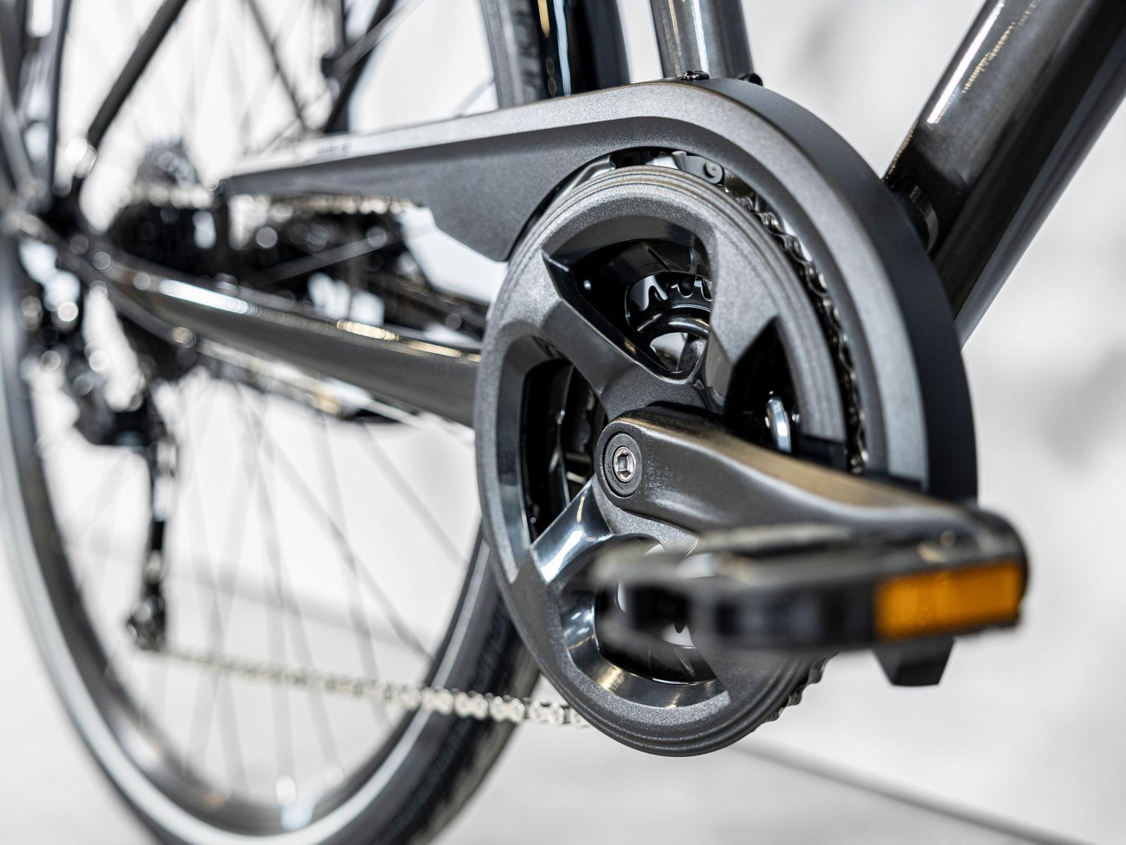 Einen leichten Aluminiumrahmen mit einer Geometrie, die eine komfortable, aufrechte Sitzhaltung ermöglicht. Dazu gibt es einen zuverlässigen Antrieb mit 18 Gängen für eine stets optimale Trittfrequenz, kraftvolle Scheibenbremsen, einen verstellbaren Vorbau, einen gepolsterten Sattel, ergonomische Griffe, reflektierende, breite 40C-Reifen für mehr Stabilität, eine stoßdämpfende Federgabel, eine gefederte Sattelstütze und eine über einen 3 Watt starken Nabendynamo gespeiste Beleuchtung. Zudem kommt es ab Werk mit viel praktischem Zubehör, wie etwa Schutzblechen, Beleuchtung, Seitenständer, Schloss und MIK-kompatiblem Heckgepäckträ