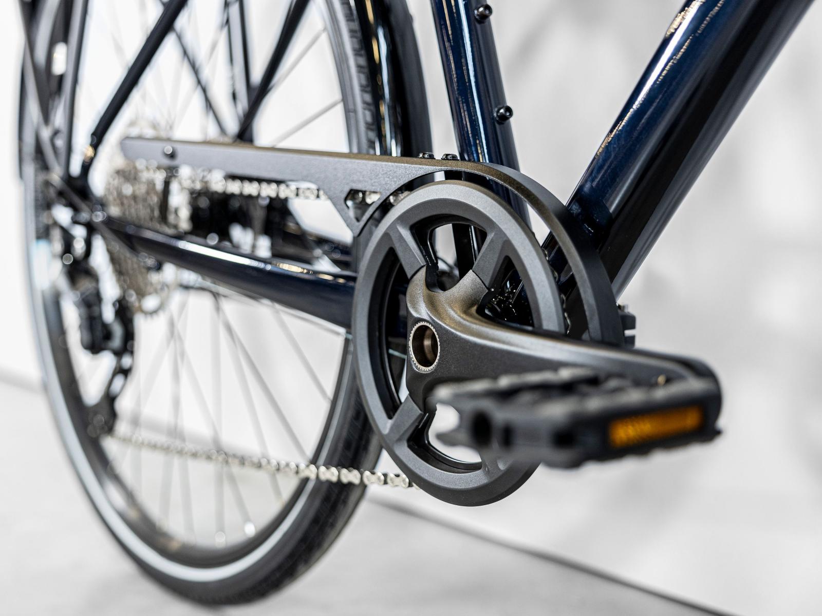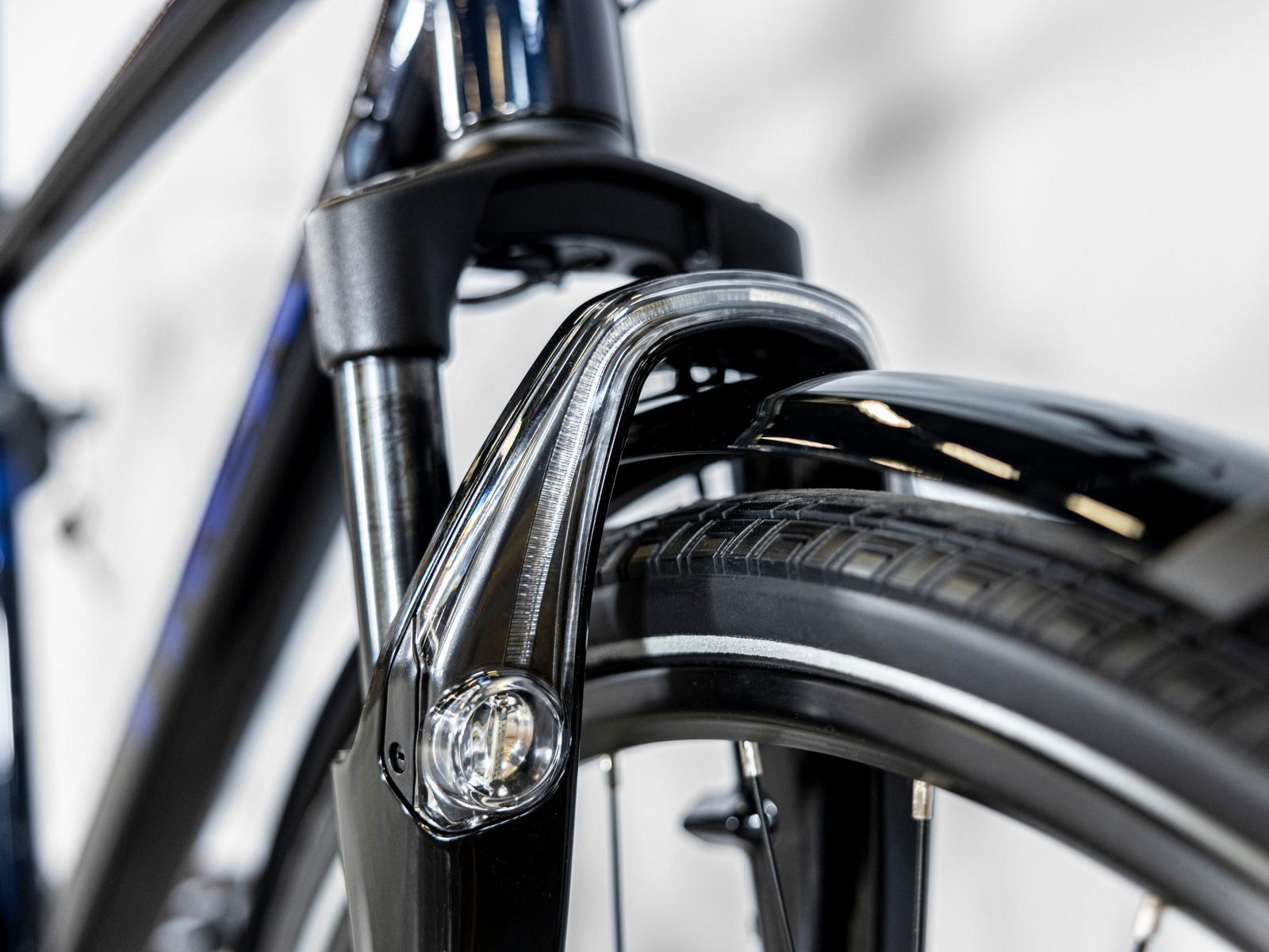 Einen leichten Aluminiumrahmen, einen zuverlässigen 1x10-Antrieb von Shimano mit breitem Übersetzungsbereich, einen Shimano-Nabendynamo und eine stoßdämpfende Forklight 3.0-Federgabel mit integriertem Scheinwerfer. Ferner gibt es eine gefederte Sattelstütze, leistungsstarke Scheibenbremsen, breite 40C-Reifen für mehr Stabilität, einen verstellbaren Vorbau, einen optimal gepolsterten Sattel und ergonomische Lenkergriffe. Zudem kommt es ab Werk mit viel praktischem Zubehör, wie etwa Schutzblechen, Beleuchtung, Seitenständer, Schloss und MIK-kompatiblem Heckgepäckträger.